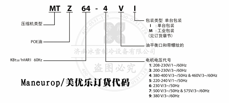 Maneurop/美優樂活塞壓縮機MTZ64-3VM詳細參數