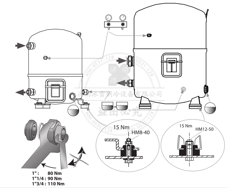 在貯存和運輸過程中請保持壓縮機豎直狀態。